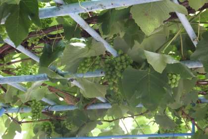 でも、学習農園のナスやぶどう棚のブドウなどの野菜や果実には、恵みの雨でどんどん成長しています。