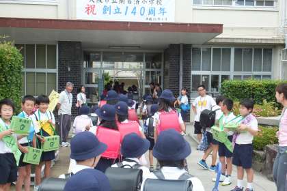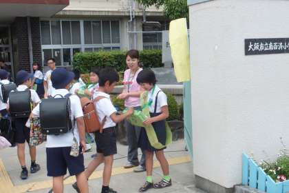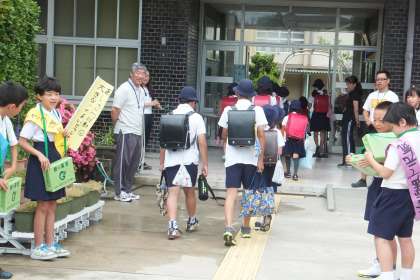 子どもたちの「おはようございます!!」、「緑の羽根募金、お願いします!!」の声は爽やかで、その声を聞きつけた地域の方が募金に来てくださいました。