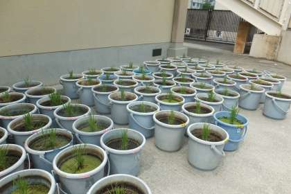 6月11日(水)、5年生でバケツ稲に取組んでいます。