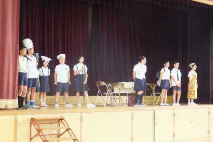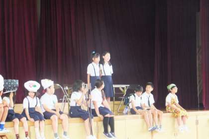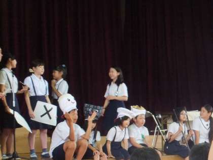 劇の後は、クイズが3問ありました。劇に関するものが2問、校長先生の朝ごはんに関するものが1問出されました。最後の1問は、少し、難しかったかもしれませんね!!