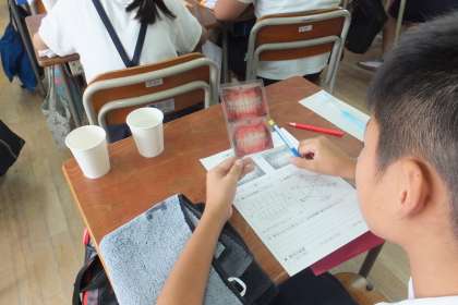 歯科衛生士の先生からは、「80歳まで20本の歯を残しましょう!!そのため、虫歯や歯周病にならないように、毎日、歯磨きをして、しっかり歯垢まで落としましょう」とお話していただきました。歯磨きは歯一本ずつ丁寧に磨き、舌でツルツルになったか、確認すると良いそうです。
