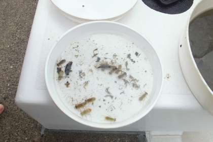 あちらこちらから、「アッ!!とれた、とれた!!」と声が聞こえます。多いグループは10匹以上つかまえました。