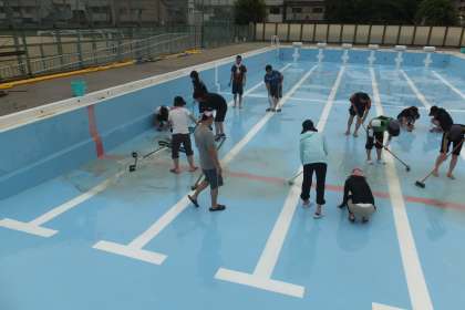 これで、明日のプール開きの準備はOK!!子どもたちも、きっと、楽しみにしていることでしょう!!