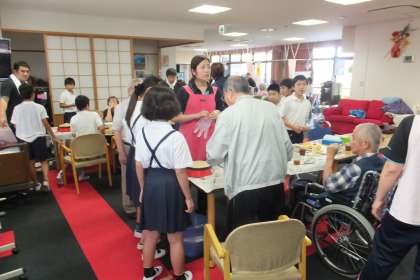 お年寄りの方とは、自己紹介したり、お話ししたりしながら少しずつうちとけていきました。