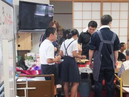 そして、お年寄りの方との交流では、一緒にたこ焼きを焼いて食べました。