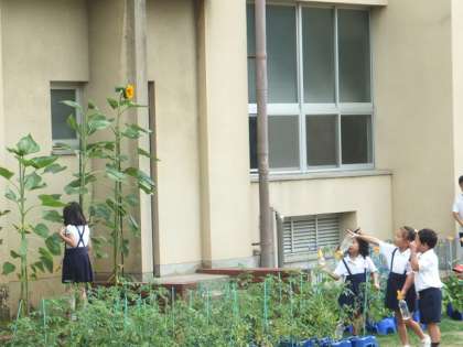 6月27日(金)、学校のヒマワリの花が咲きました!!