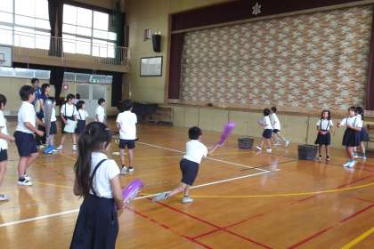 3年1組は、体育館でスポーツセンターをしています。