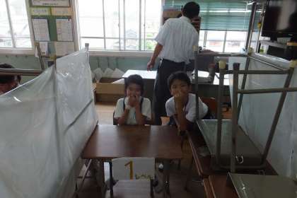 セロテープを使った変顔や面白い絵とにらめっこです。30秒我慢できるかな??