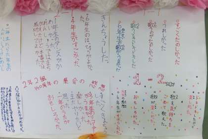 とても緊張した思い出、他の学年の発表を見た感動、練習の成果が発揮できた達成感、様々な感想がありました。