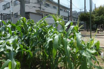 学校でも、トウモロコシ、キュウリ、ナス、オクラ、ゴーヤなどいろんな夏野菜を栽培しています。どこで、栽培しているか、探してみてはどうですか??