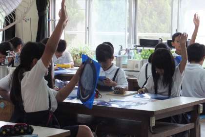 七夕は終わりましたが、「夜空を見よう」という単元で星座盤の使い方を学習しました。先生の言う星座を探したり、友だちと星座の探し合ったりしました。