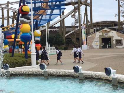 スペイン村に到着。学級写真を撮って、グループ活動開始。本日、小学校9校。すいています。