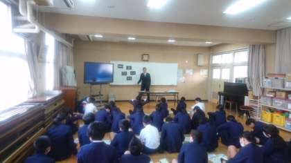 昨日、6年生対象に税務署からゲストティーチャーを招き、租税教室が開かれました。税金の種類や税金の使われ方などを学びました。