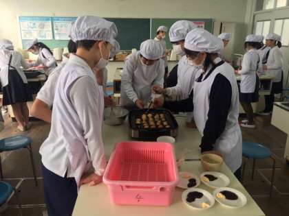 先週のことですが、6年生は調理実習をしました。課題は「大阪名物を作ろう」ということで、たこ焼き作りをしました。