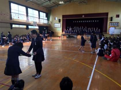 最後に6年生から在校生へのプレゼントを渡してお別れ集会終了!