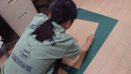 20日(水)職員室では、先生が定規とペンを持ち、真剣なまなざしで段ボールに向き合っていました。話しかけられないほどの集中!