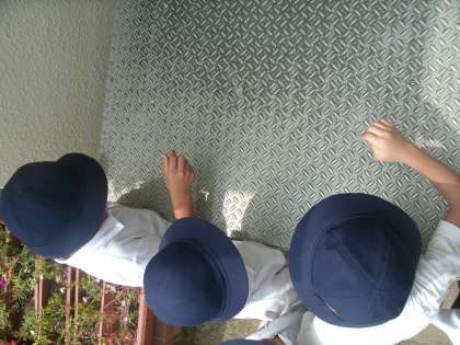 2時間目と3時間目の間の20分休みの時間に、1年生の男の子数名が朝礼台の前に集まっていました。何をしているのか気になって話しかけてみると、朝礼台の上を蟻が歩いているのを見学しているのだとか。