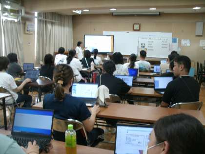3日(水)放課後、総合教育センターから講師を招き、外国語指導の研修会を実施しました。現在、小学校では3・4年生は「外国語活動」5・6年生は「外国語」として必修化されています。外国語の授業では、コミュニケーションの楽しさを体験し、言語や文化への理解を深めることが目的です。