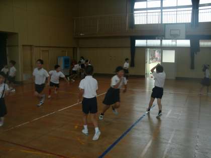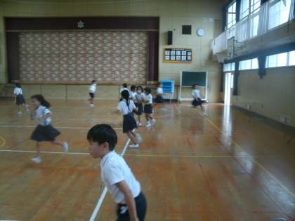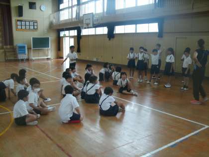 本当は校庭でやりたかったそうですが、体育館でも笑顔はじける子ども達。とても楽しそうでした。