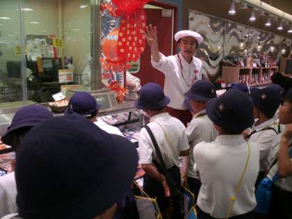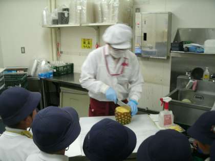 バックヤードでパイナップルをカットしている様子にくぎ付けです。