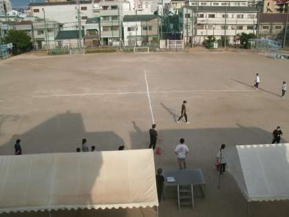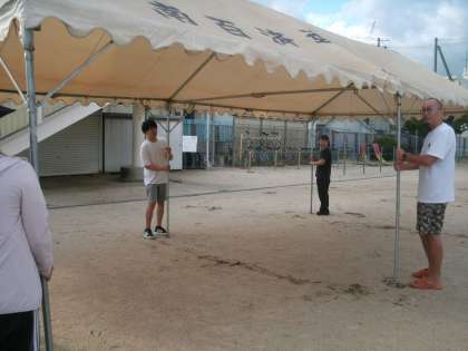 運動会の練習は、これから校庭での練習が増えてきます。休憩時間には日陰に入れるようにするためのテント設置です。たくさん汗をかきますので、充分な水分を持たせて登校させてください。