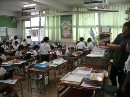 乾燥棚に置いてある作品を指さして「ぼくの作品ここ」と自信満々に伝えてくれる子もいました。お披露目が楽しみです。