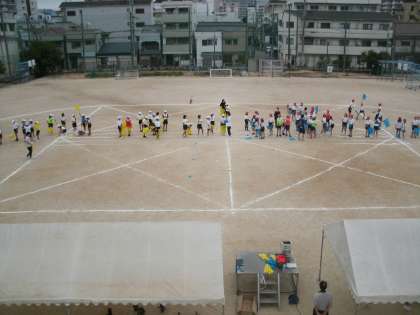 校庭での練習も始まりました。広い校庭では自分の立ち位置を確認するのも一苦労です。