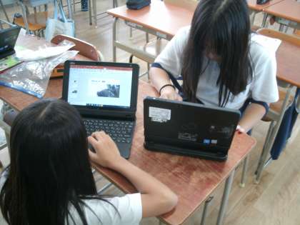 今日は実践学習に取り組みました。自分で見つけた清掃すべき場所を清掃し、ビフォーアフターの写真を取り込んでパソコンで発表します。