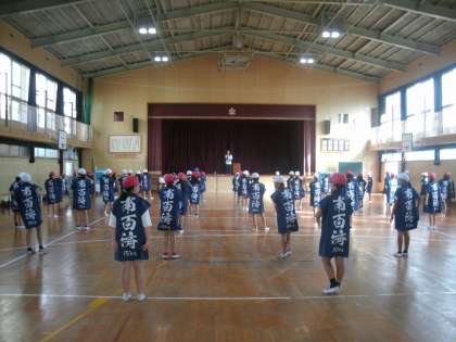 昨年創立150周年記念で記念事業委員会からプレゼントされた法被にそでを通して練習しました。本番でのお披露目が楽しみです。