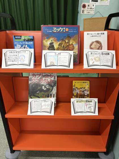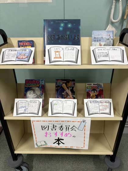 図書委員会のメンバーが図書室で「おすすめの本」を紹介してくれています。