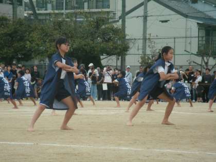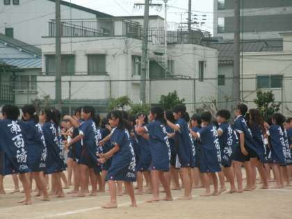 毎年5年生が躍ってきた南百伝統のソーラン節。昨年創立150周年記念事業委員会から贈られた新しい法被で自信満々に舞い踊りました。