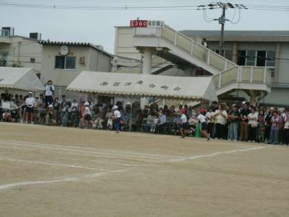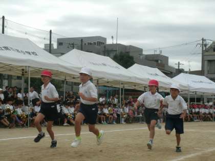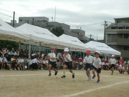 初めてコーナリングのあるかけっこに挑戦した2年生。負けじ魂で走り抜けました。
