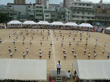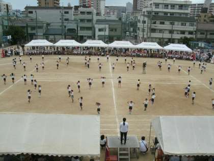 小学校初めての運動会。かわいいダンスを披露した1年生。隊形移動も完璧。