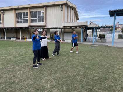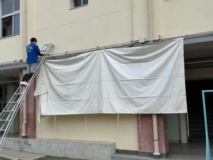 今年は、初めて中運動場で実施する予定です。子ども達の目線を考えながら、幕の位置を調整しました。成功に向けて、今後も映像チェックや音声チェックなどを実施する予定です。