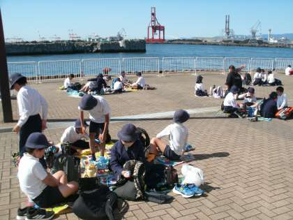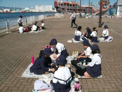 楽しいお弁当の時間は、サンタマリア号を眺め、外国からの観光客に手を振りながらおいしく頂きました。朝早くからおいしいお弁当をご準備くださり、ありがとうございます。