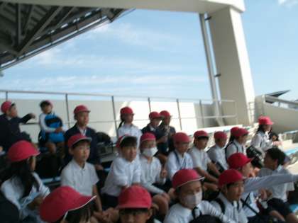 イルカの素晴らしい身体能力や泳ぎの速さに歓声をあげる5年生!反応がとっても素直でその場をいつも以上に盛り上げる観客へと化していました。