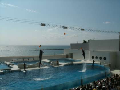 須磨シーワールドに到着してすぐに「イルカショー」を見学しました。
