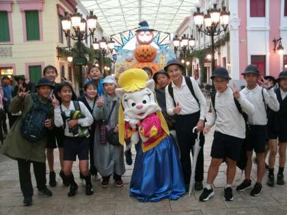 スペイン村の人気者「ダル」と記念撮影。パーク内はハロウィン仕様ですね。