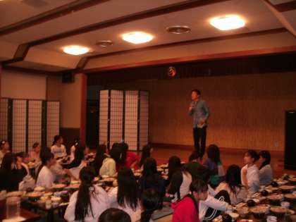 学年主任によるカラオケ大会??のように見える先生からのお話。