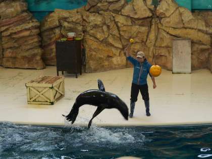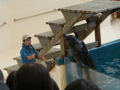 飼育員さんの指示で見事に芸をこなすアシカにびっくり。