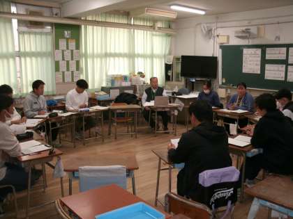19日に実施する3年生の研究授業に向けて、これまで3年生の先生方が検討してきた学習指導案を他学年の先生たちも参加して検討を重ねていきます。