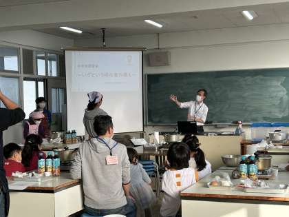 区役所から栄養士の方が来てくださり、災害時の食について日常生活の延長で対応する方法を教えて頂きました。