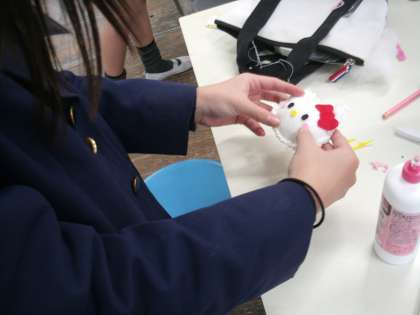 指示書に従ってみんな一生懸命取り組んでいますが、時間内に作り終えるのは難しいですね。お裁縫が得意な子の作品に感心しながら、「よし自分も仕上げるぞ!」と意気込む子ども達。少しずつ形になる作品を周りの子に見せながら楽しく活動しました。家でも作業を進めたい子は材料を持ち帰っています。