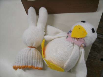 27日(木)手作りクラブでは、軍手を使った人形作りを進めています。