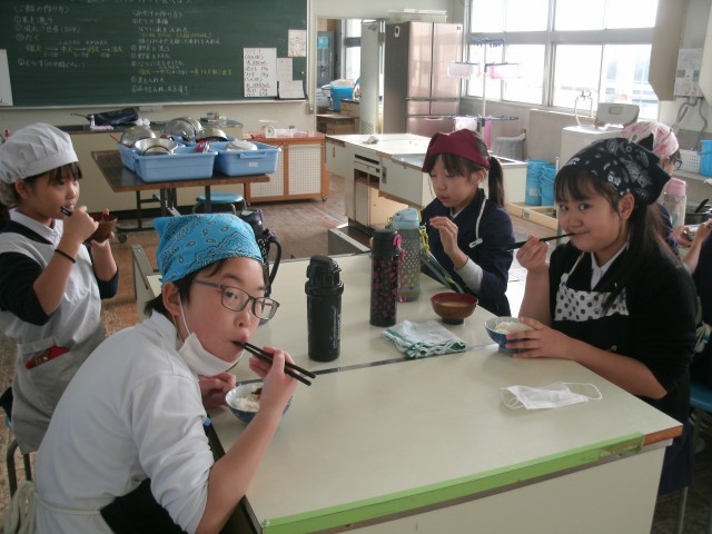 炊飯器で簡単に炊けるお米ですが、鍋を使って水の量、火加減に注意しながら炊くお米はふっくら炊くのが大変難しいことが分かりました。それでも、自分たちで作ったごはんとお味噌汁はとってもおいしかったようです。