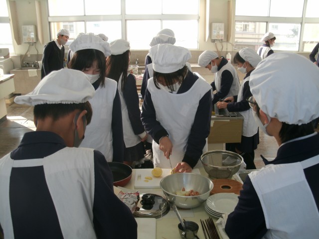 16日(火)朝から6年2組さんが調理自習に取組んでいます。