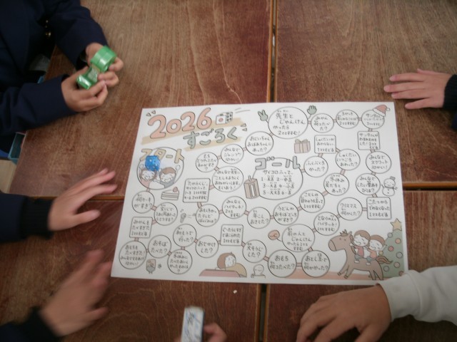 グループを作って、すごろくを楽しんでいる1年3組さん。ルールを守って、友達と楽しく遊ぶことができていますね。