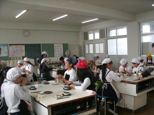 29日(木)5・6時間目、5年2組さんが調理実習をしました。