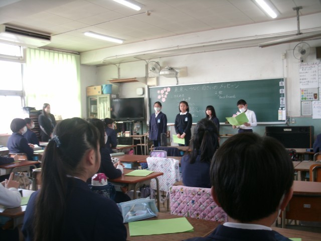 未来の自分を想像しながら一生懸命書いた作文を一人ひとり全員の前で発表しました。クラス全員の前で発表するのも緊張しますが、クラス全員の保護者の方も見ている前で発表するのは、さらに緊張したと思います。