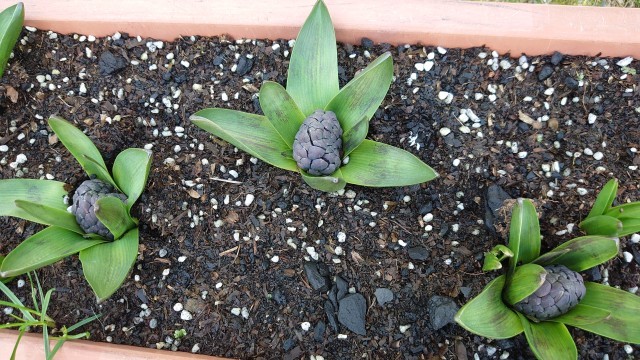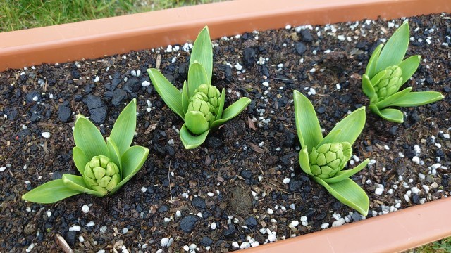 ヒヤシンスの蕾の形、チューリップの芽の間にたまった宝石のような水滴、美しい花の数々。心躍る春は目の前です。